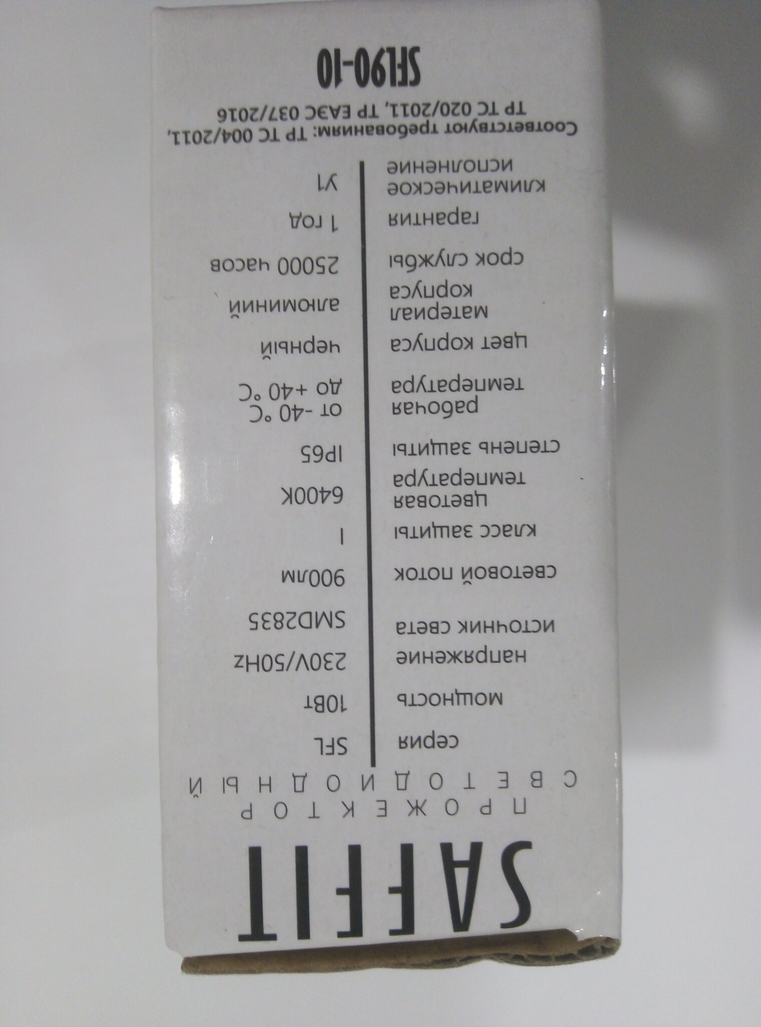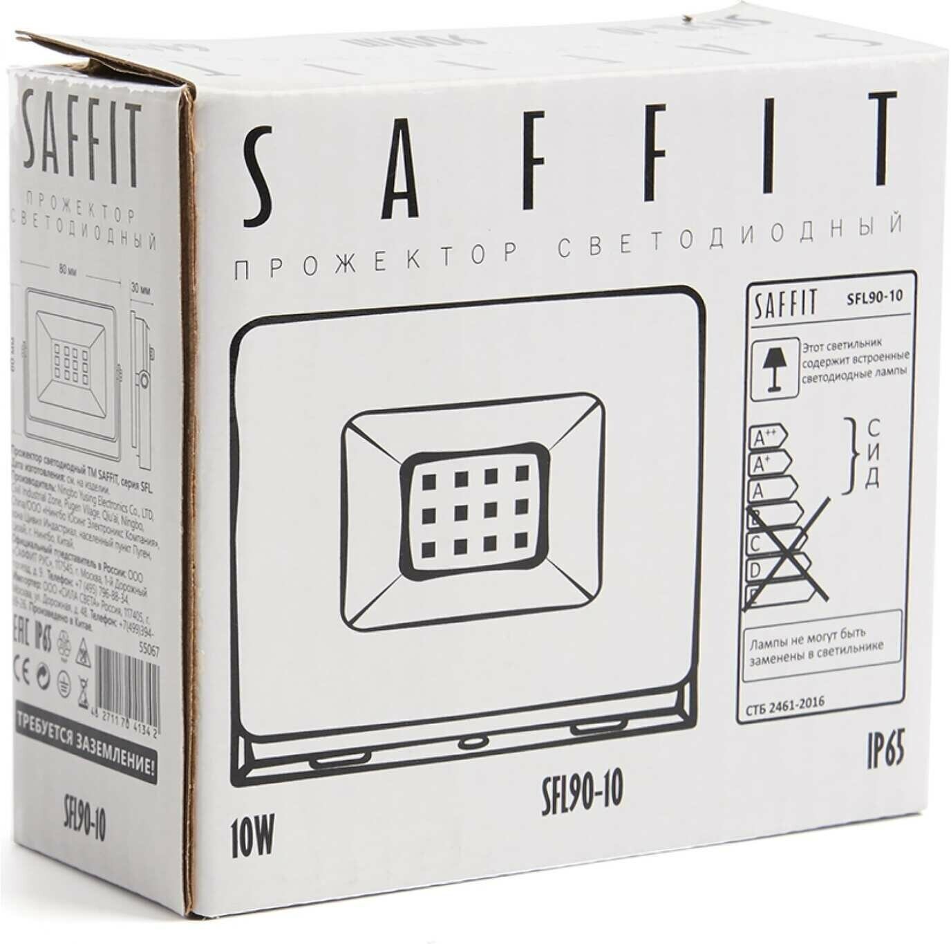 Saffit прожектор св/д 10W(900lm) 2835SMD 6400K 6K 80х60х30мм SFL90-10 IP65