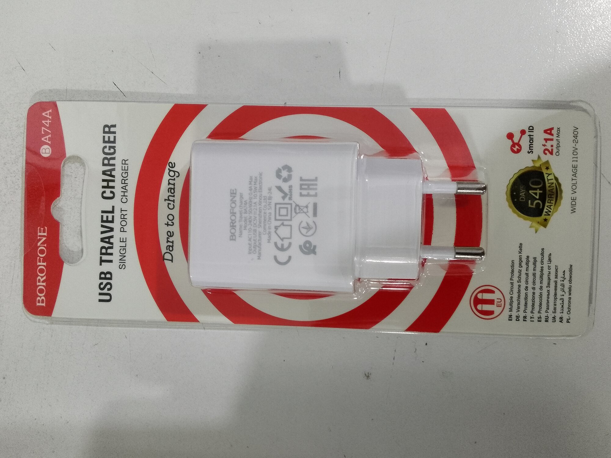 Сетевое зарядное устройство 1 USB Borofone BA74A Aspirer, пластик, 2.1A, цвет: белый