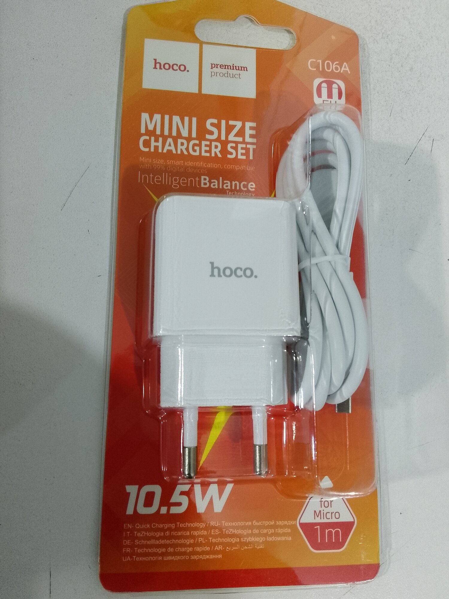Сетевое зарядное устройство 1 USB HOCO C106A Leisure, пластик, 2.1A, кабель USB - микро USB, цвет: белый