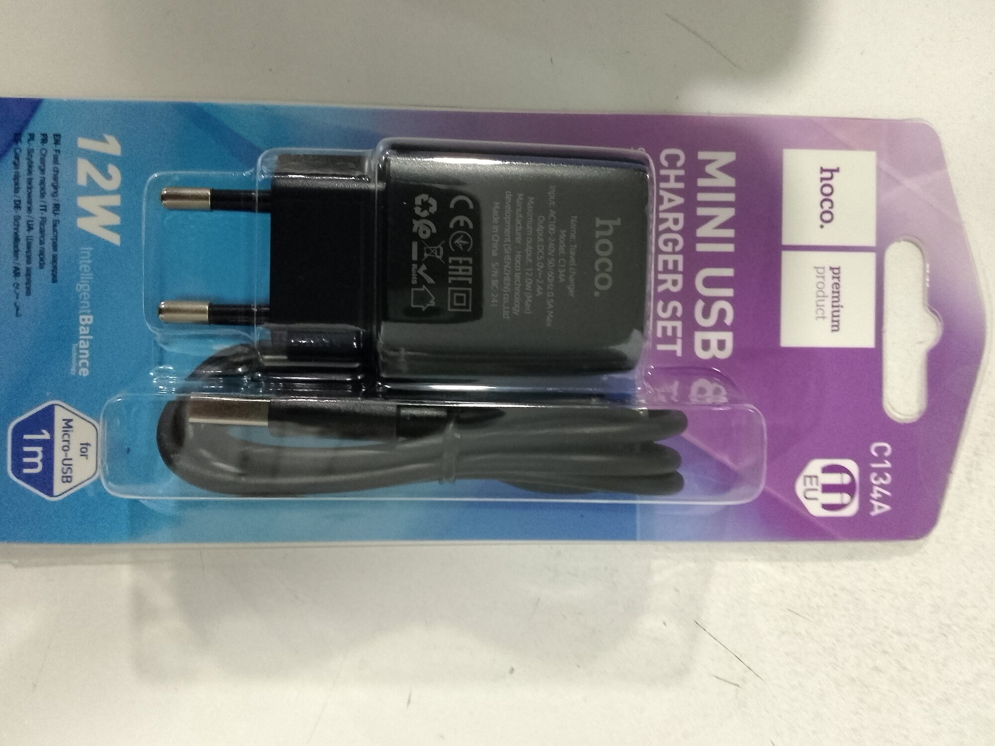 Сетевое зарядное устройство 1 USB HOCO C134A Solid, 3000mA, пластик, 2.4A, кабель USB - микро USB, цвет: чёрный