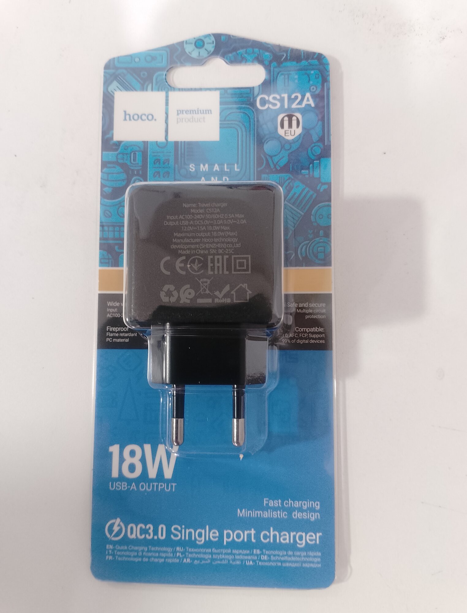 Сетевое зарядное устройство 1 USB HOCO CS12A Ocean, PD18Вт, QC3.0, цвет: чёрный