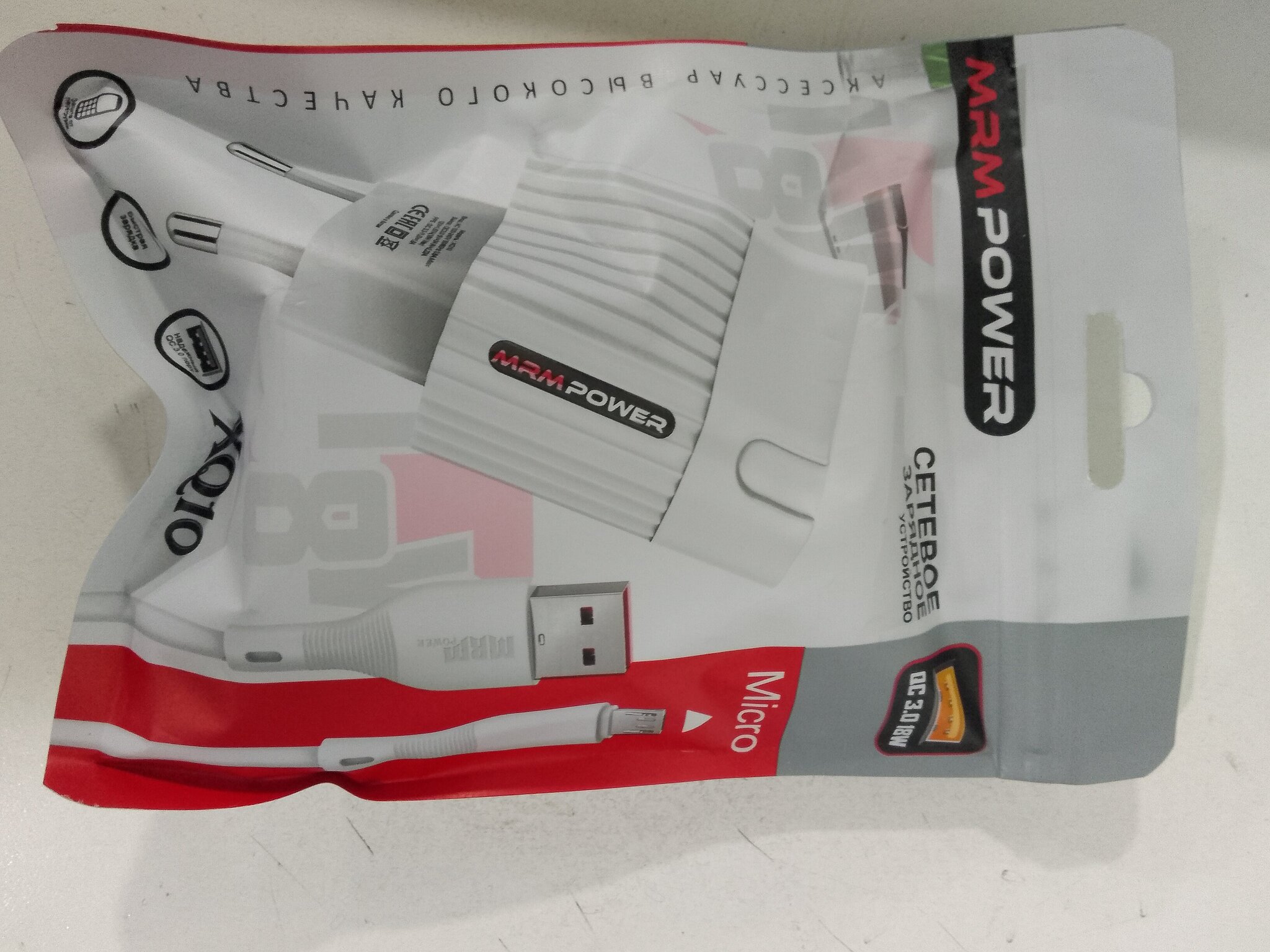 Сетевое зарядное устройство Micro USB MRM XQ10 QC3.0 5V/3.1A 18W белое