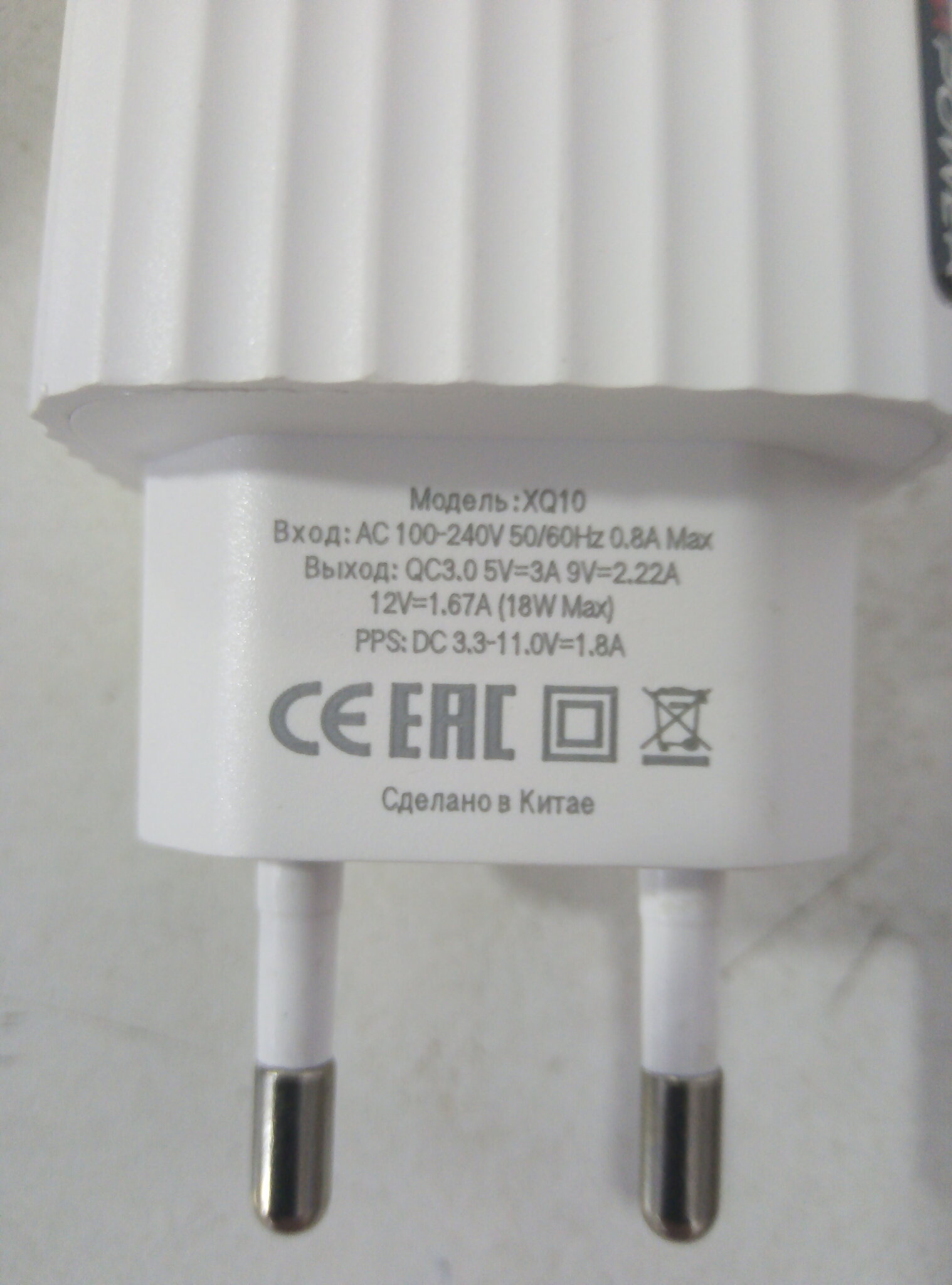 Сетевое зарядное устройство MRM XQ10 QC3.0 5V/3.1A 18W 1USB белое
