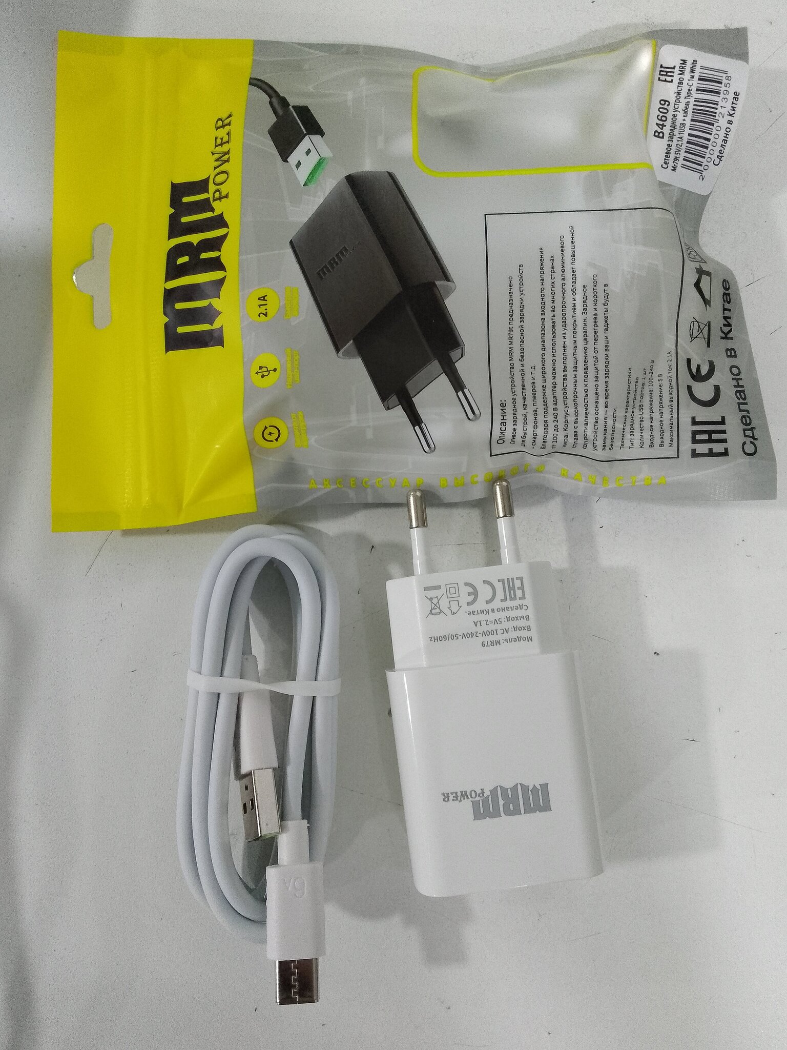 Сетевое зарядное устройство Type-C MRM MR79t 5V/2.1A 1м. белое