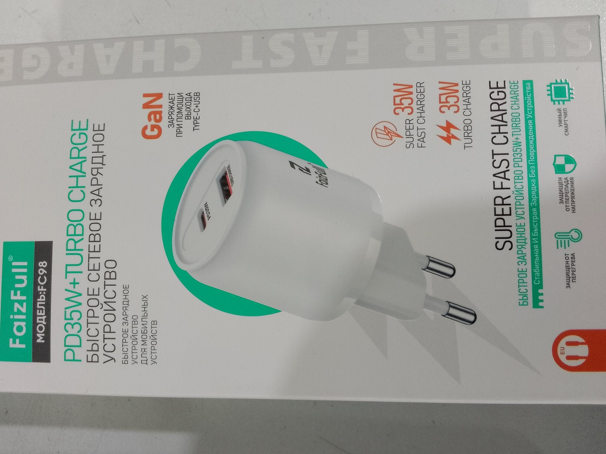 Сетевое зарядное устройство USB+USB-C FaizFull FC98 USB-C 35W/USB-A 35W белый