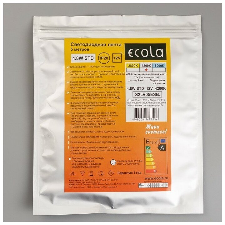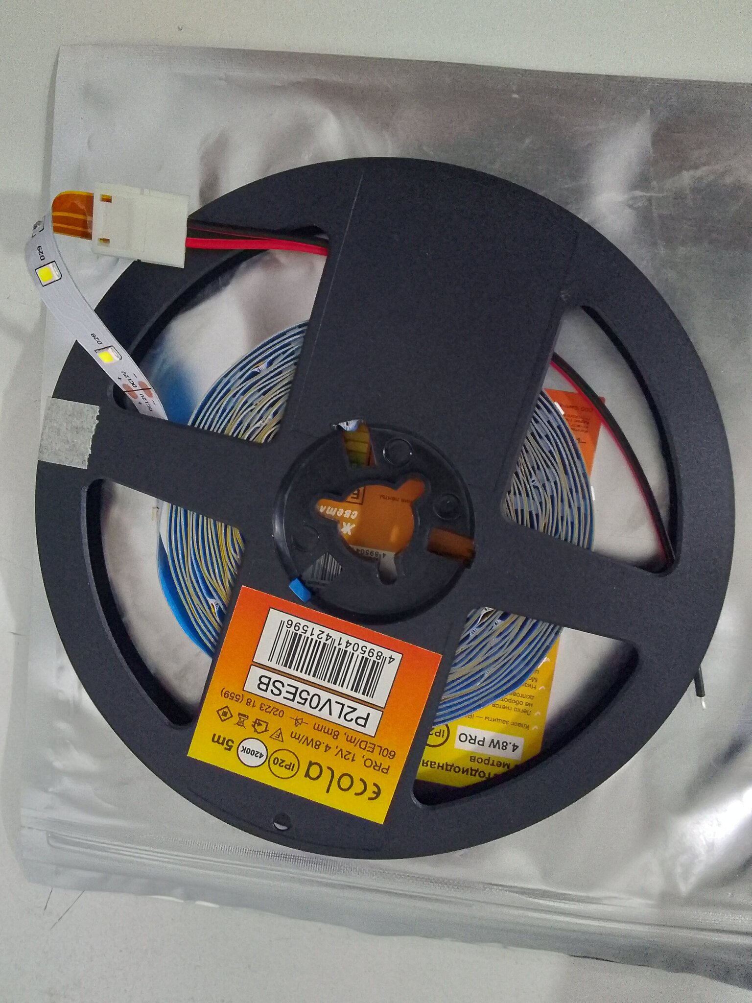 Лента светодиодная, 4.8Вт, 60 диодов на метр, 12V, IP20, 8mm, 360Lm/m, 4200к нейтральный (бело-желтый) цвет, комплект 5м.