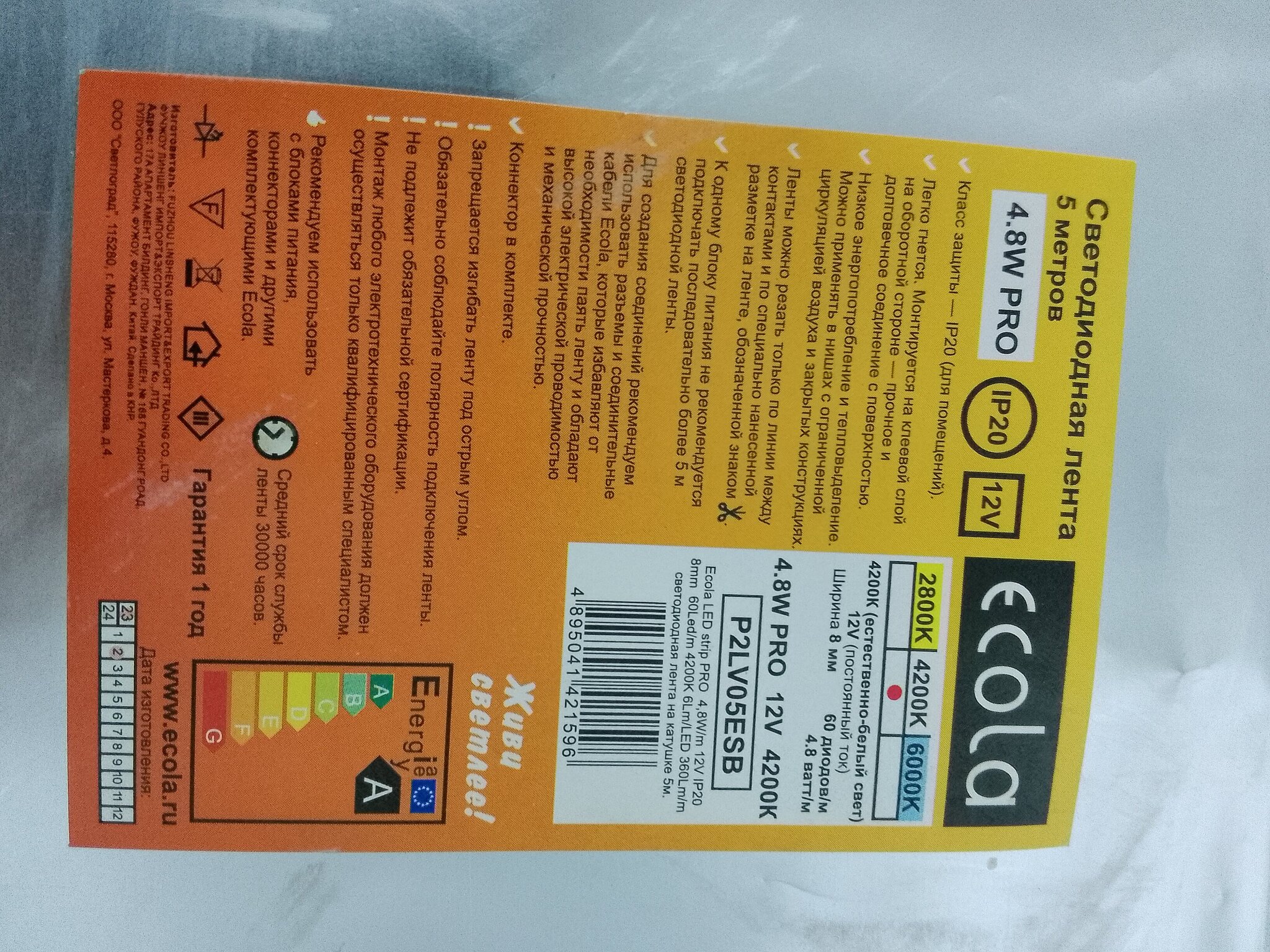 Светодиодная лента Ecola LED strip PRO 4,8W/m 12V IP20 4200K 5м.