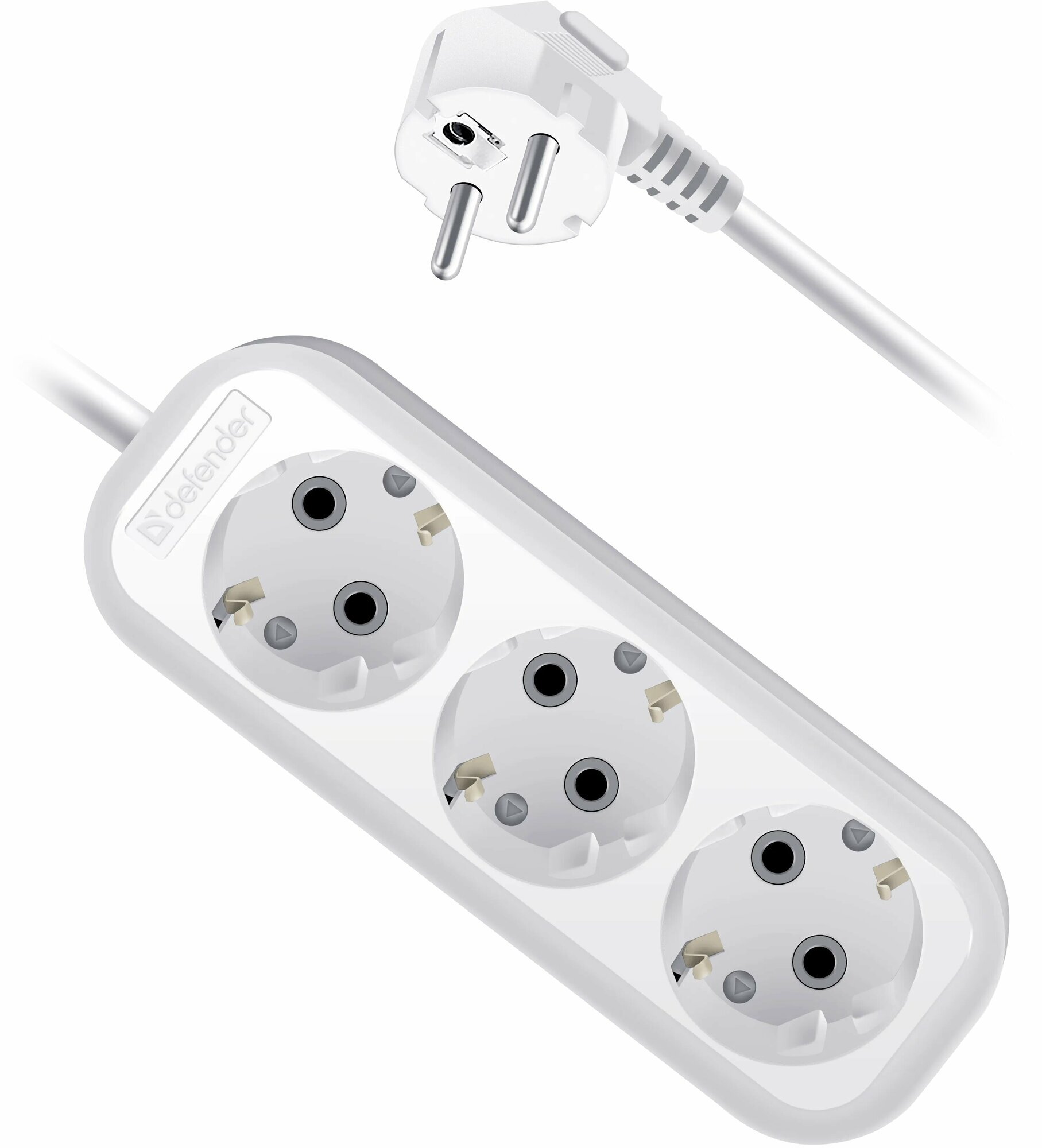 Удлинитель DEFENDER R330 3 гнезда, 1.5 метра, 16А/3500Вт, с заземлением, ПВС 3х1,0мм, белый