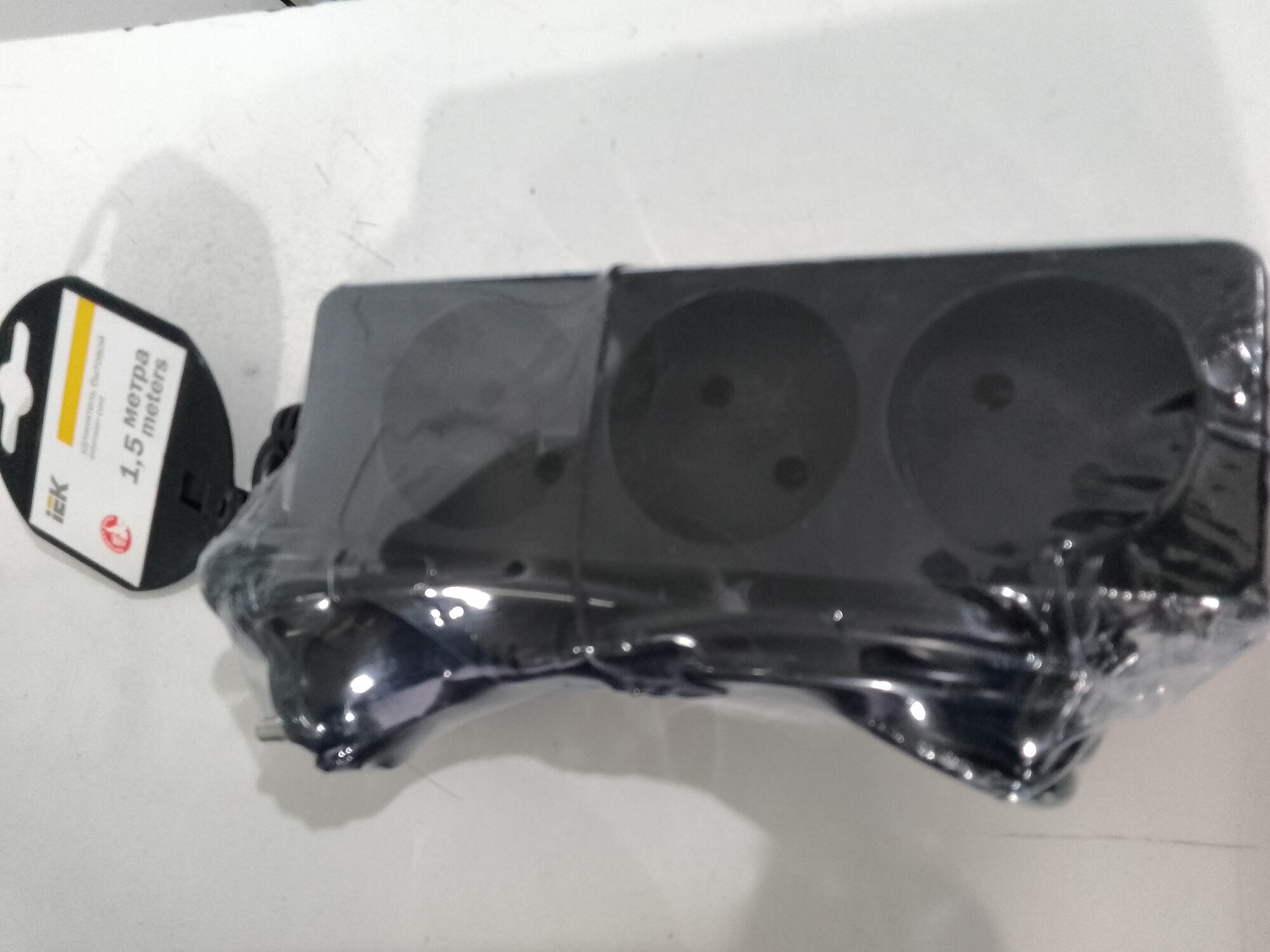 Удлинитель IEK 3 гнезда, 1,5 метра, без заземления, 10А, 2300 Вт, черный, ПВС 2х0,75