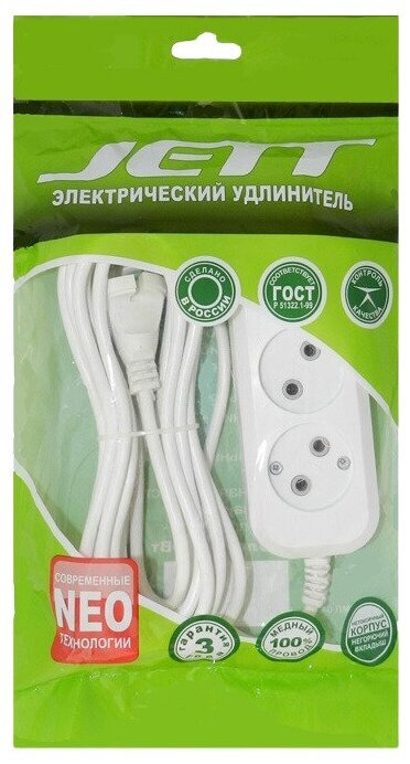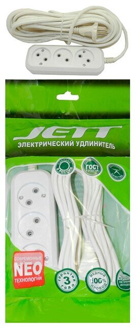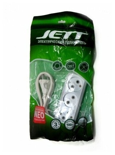 Удлинитель сетевой 3гн 1.5м 10A ДЖЕТТ (ПВС 2*0,75)