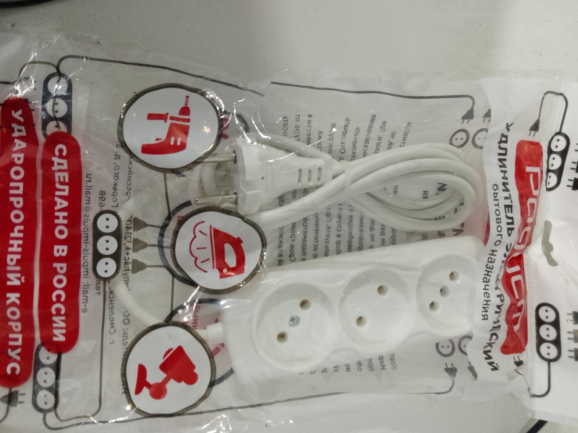 Удлинитель сетевой 3 гнезда 1.5м 10A без земли, провод ПВС 2х1