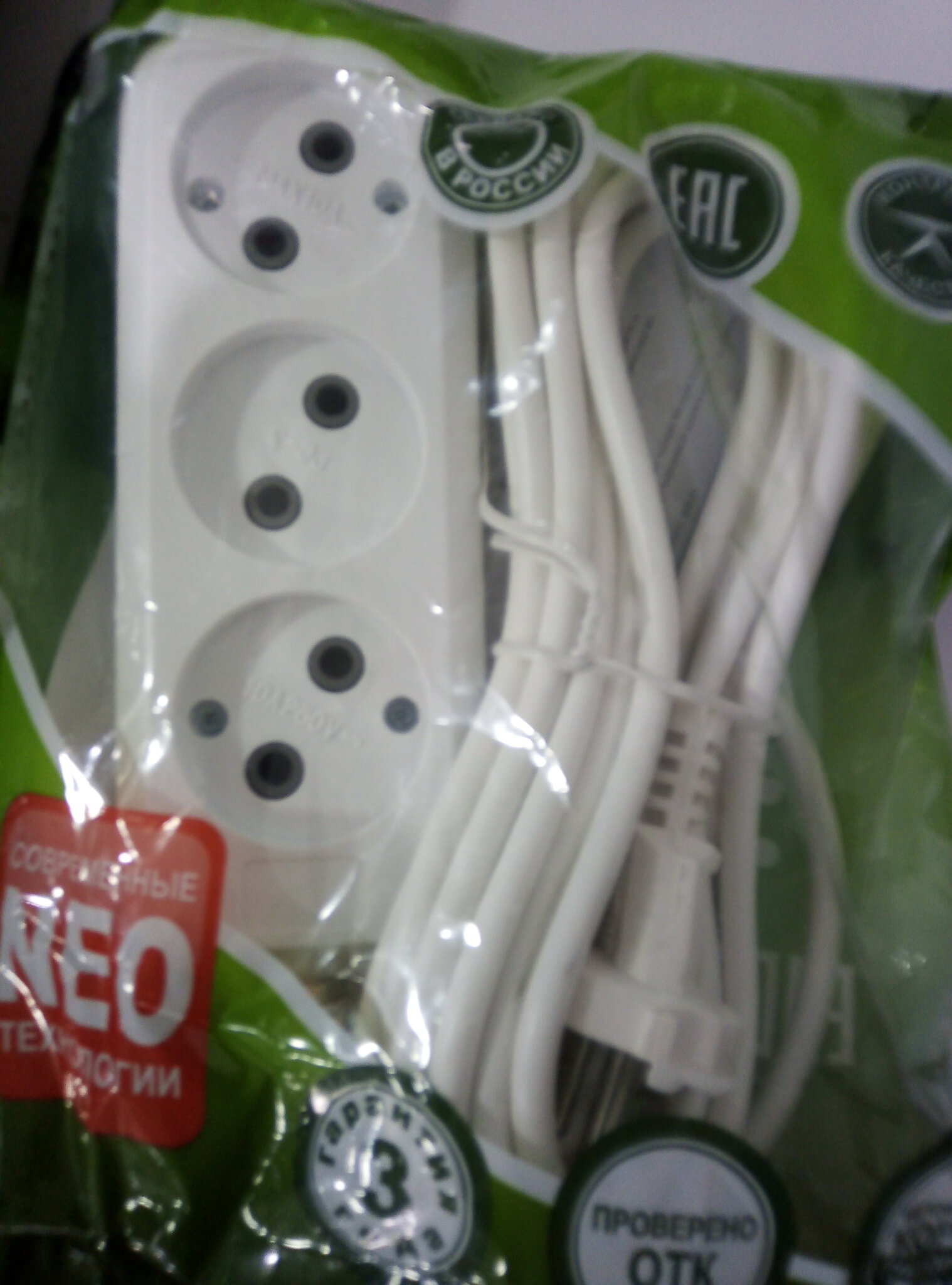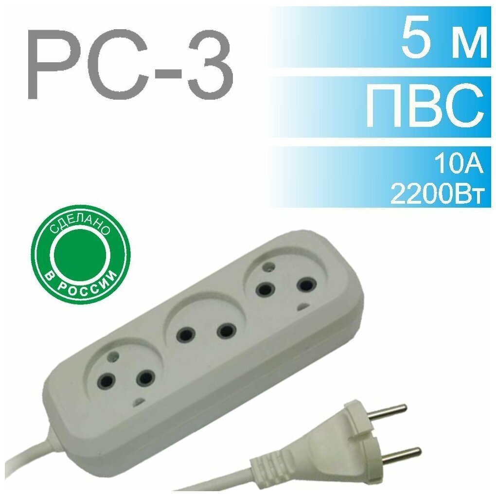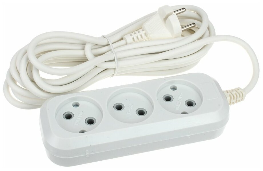 Удлинитель сетевой 3 гнезда 5м 10A провод ПВС 2х0,75