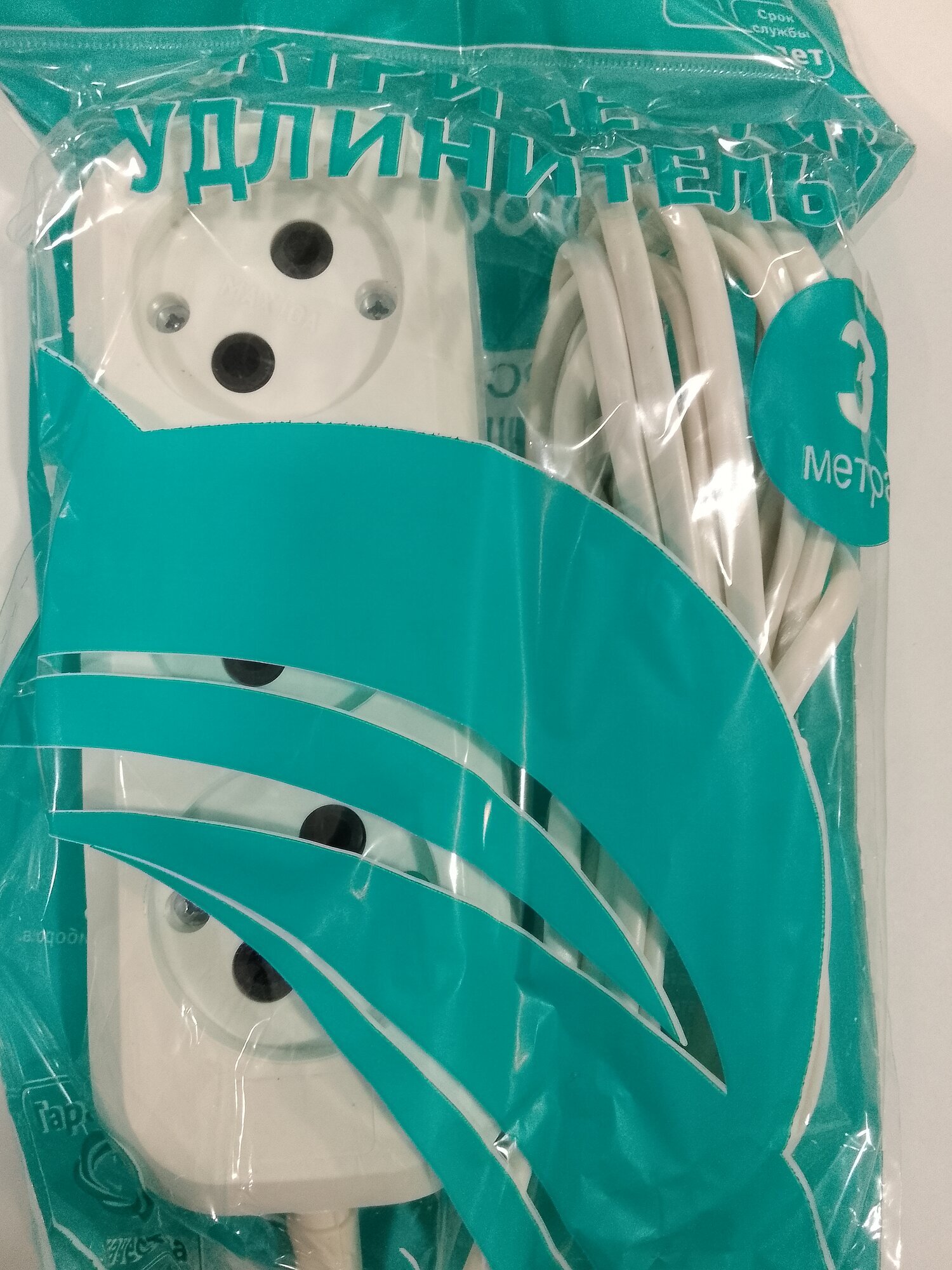 Удлинитель сетевой 3 гнезда 3м 6A без земли, шввп 2*0.5