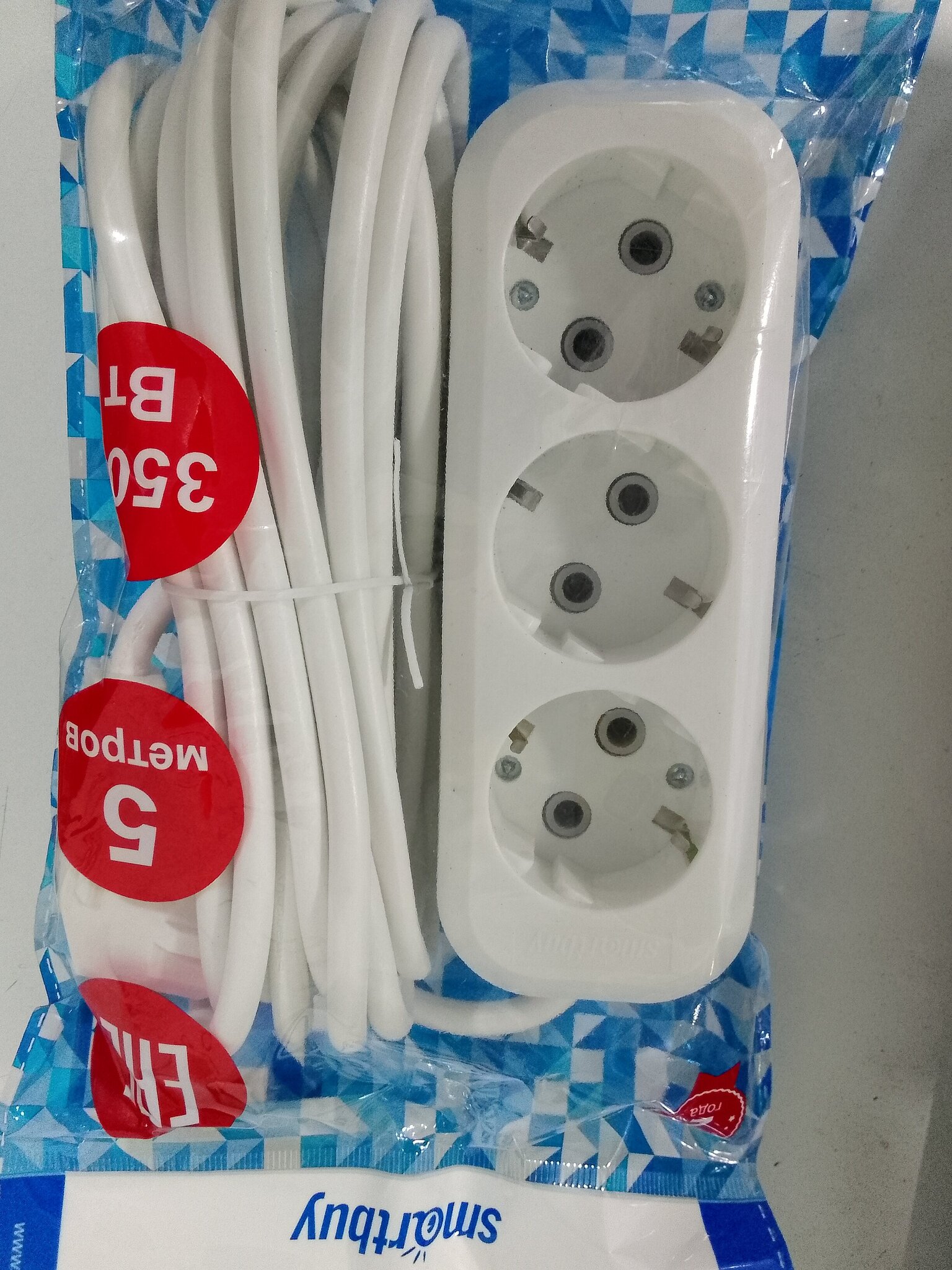 Удлинитель Smartbuy, 3 гнезда 5 метров 16А/3,5кВт с заземлением ПВС 3х1,0
