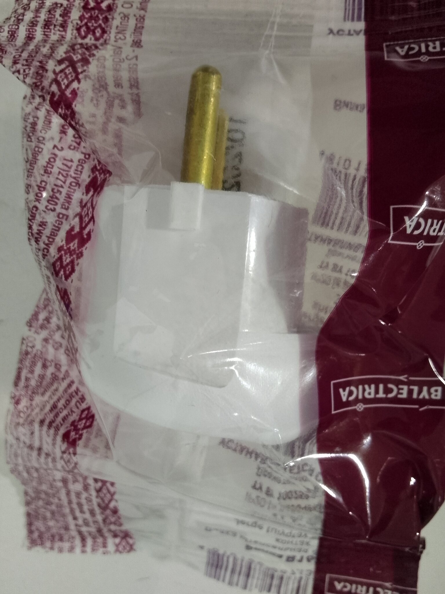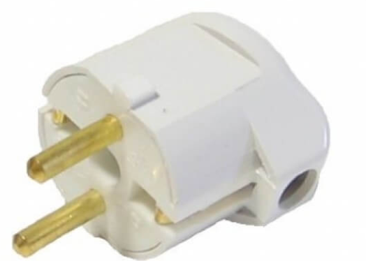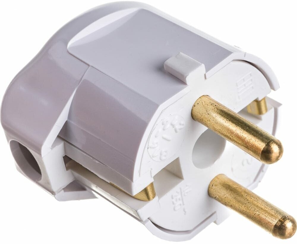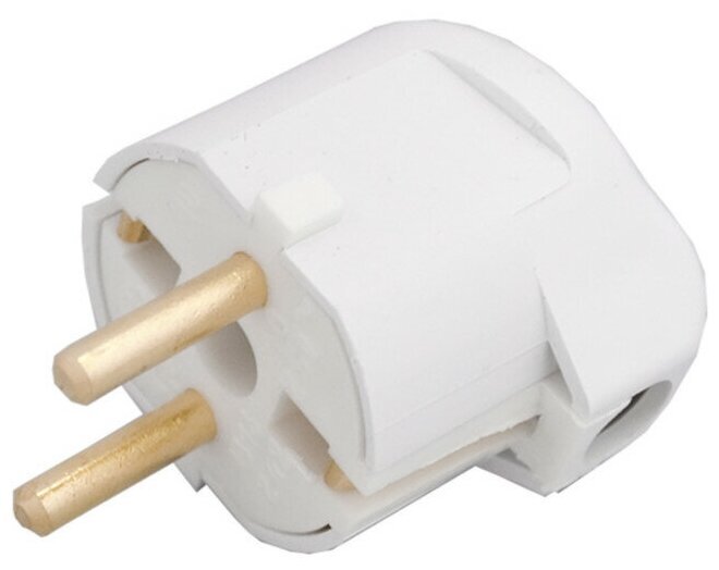 Вилка Bylectrica В16-242 16А 250В (АБС пластик, латунь, угл., земля, белая) Минск