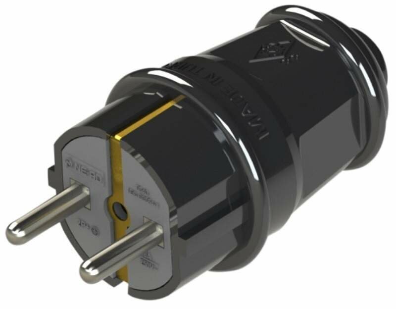 Вилка 16 А, 250 В, IP20, АБС-пластик, прямая, земля, черная (Турция)