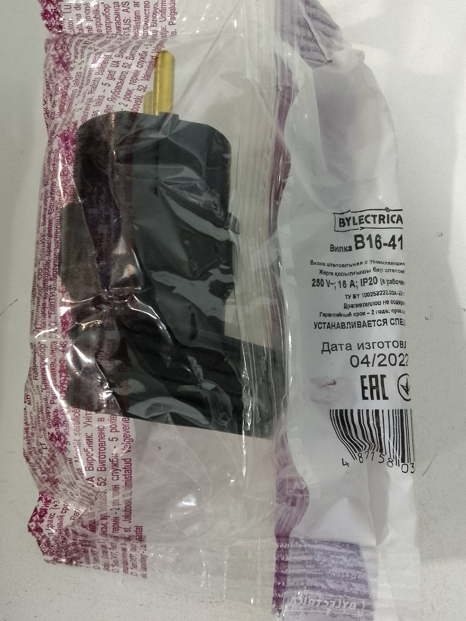 Вилка угловая Bylectrica каучук 2Р+РЕ 1х16А 220-240V В16-416