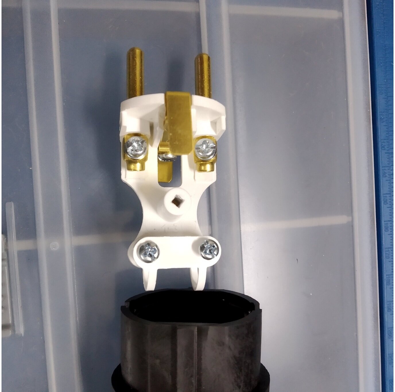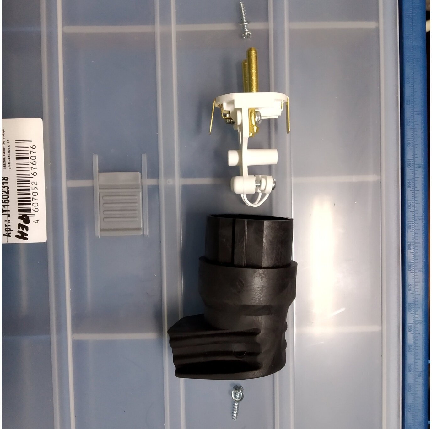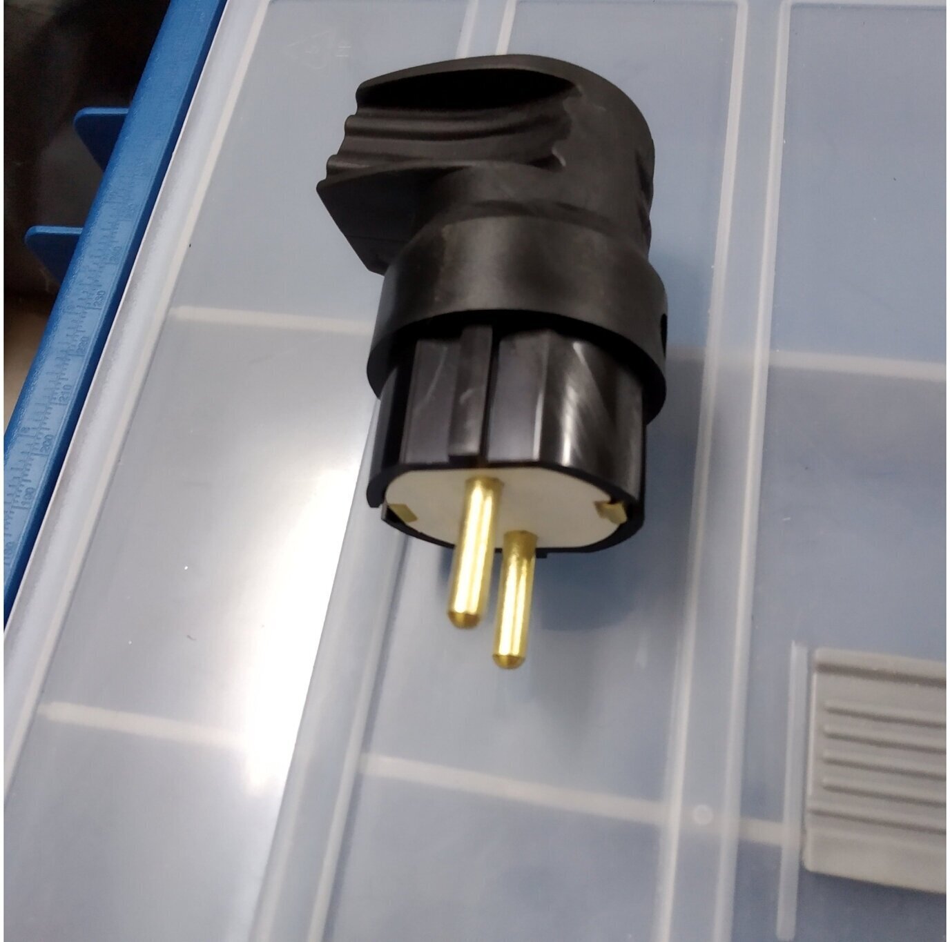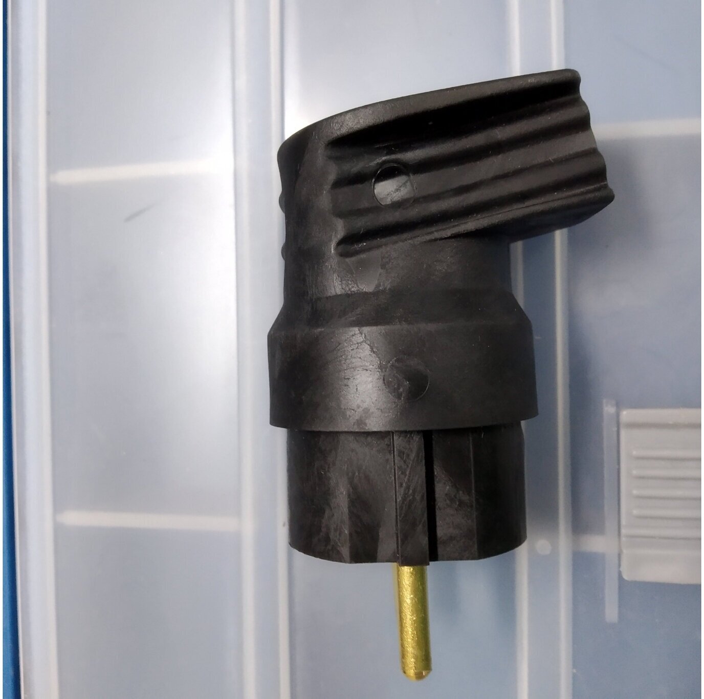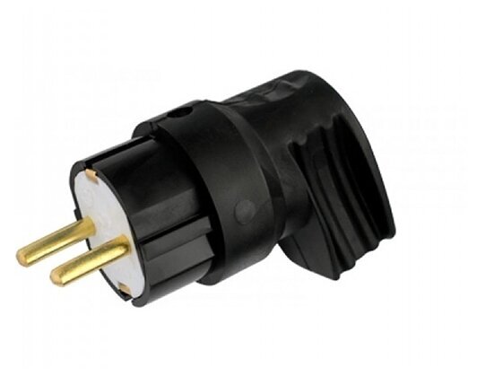 Вилка угловая каучук с землей черная 16А 250В