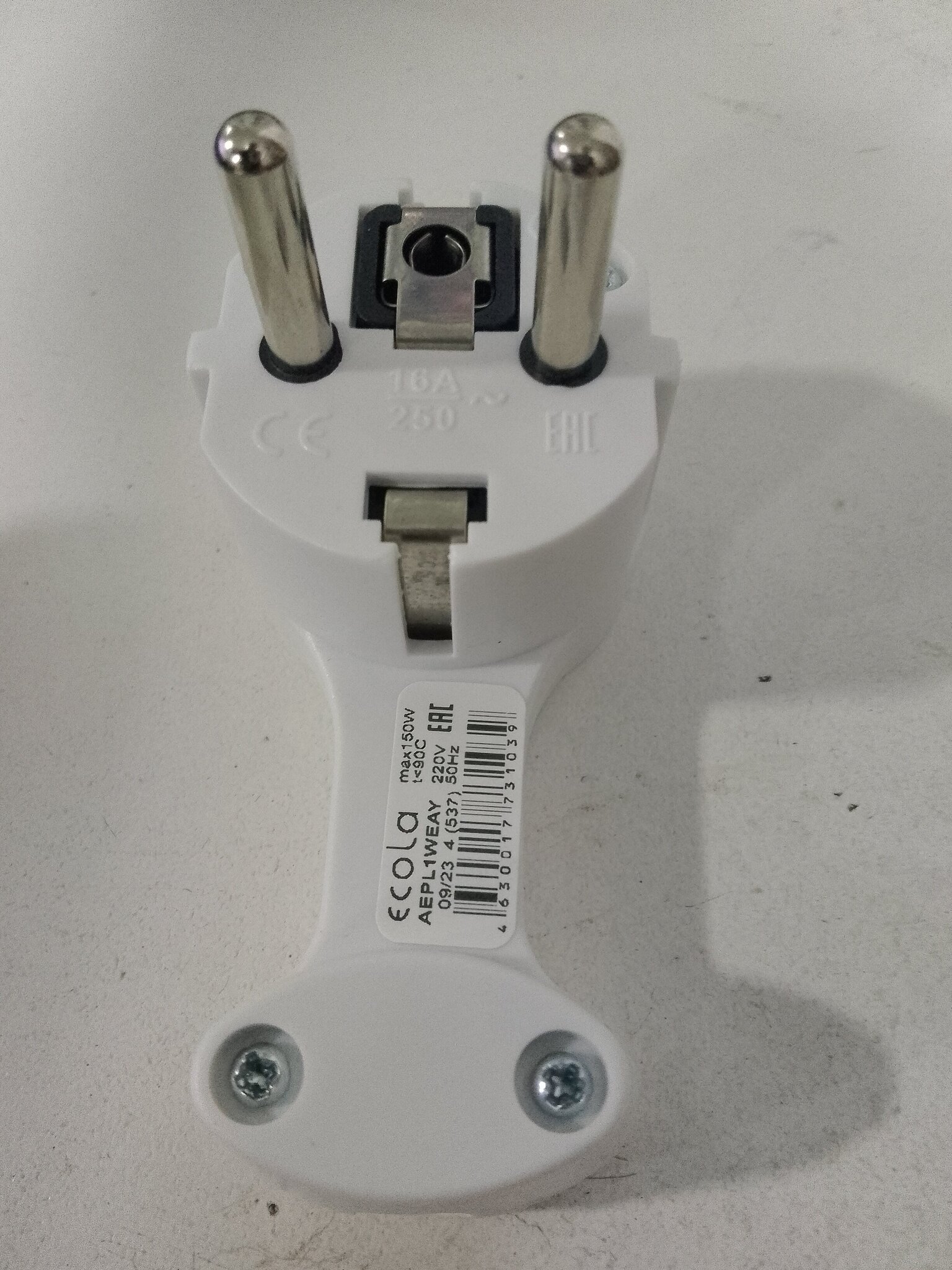 Вилка угловая ECOLA base плоская "За шкаф" Белая с заземлением 16А 250V