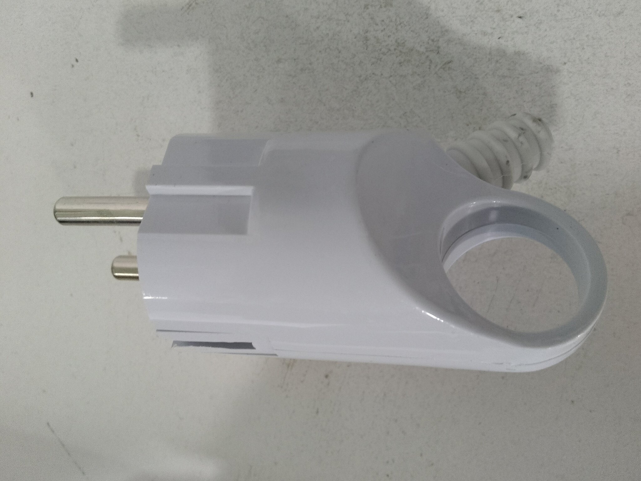 Вилка угловая с кольцом Белая с заземлением 16А 250V