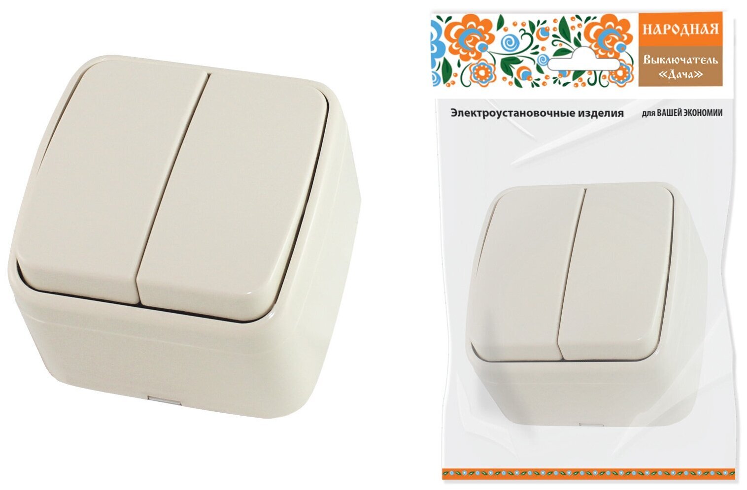 Выключатель 2-клавиш. открытой установки IP20 10А, сл. кость "Дача" Народная