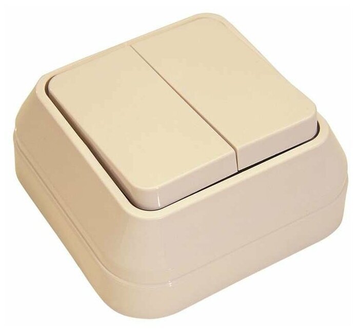Выключатель 2-клавишный открытой установки IP20 10А, слоновая кость
