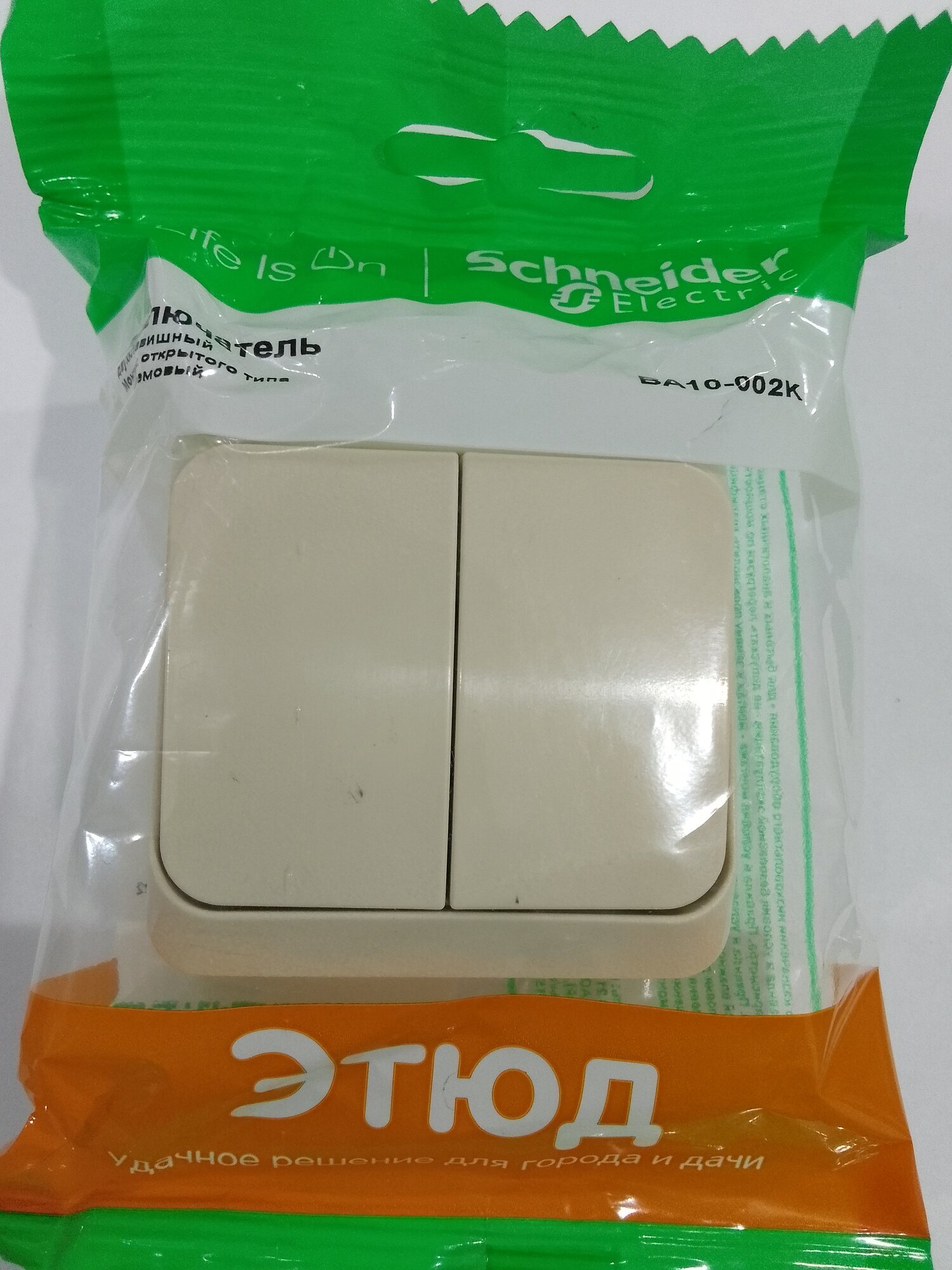 Выключатель 2-клавишный открытой установки кремовый ЭТЮД Systeme Electric