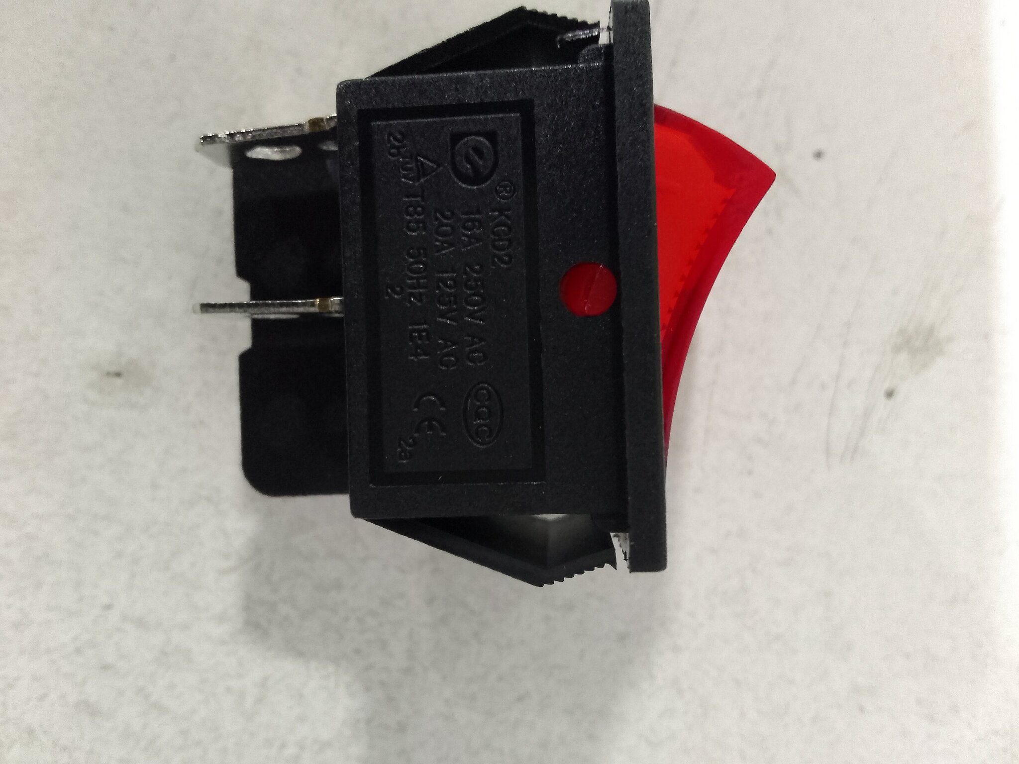 Выключатель клавишный 250V 20А (4с) ON-OFF (вкл - выкл) красный с подсветкой
