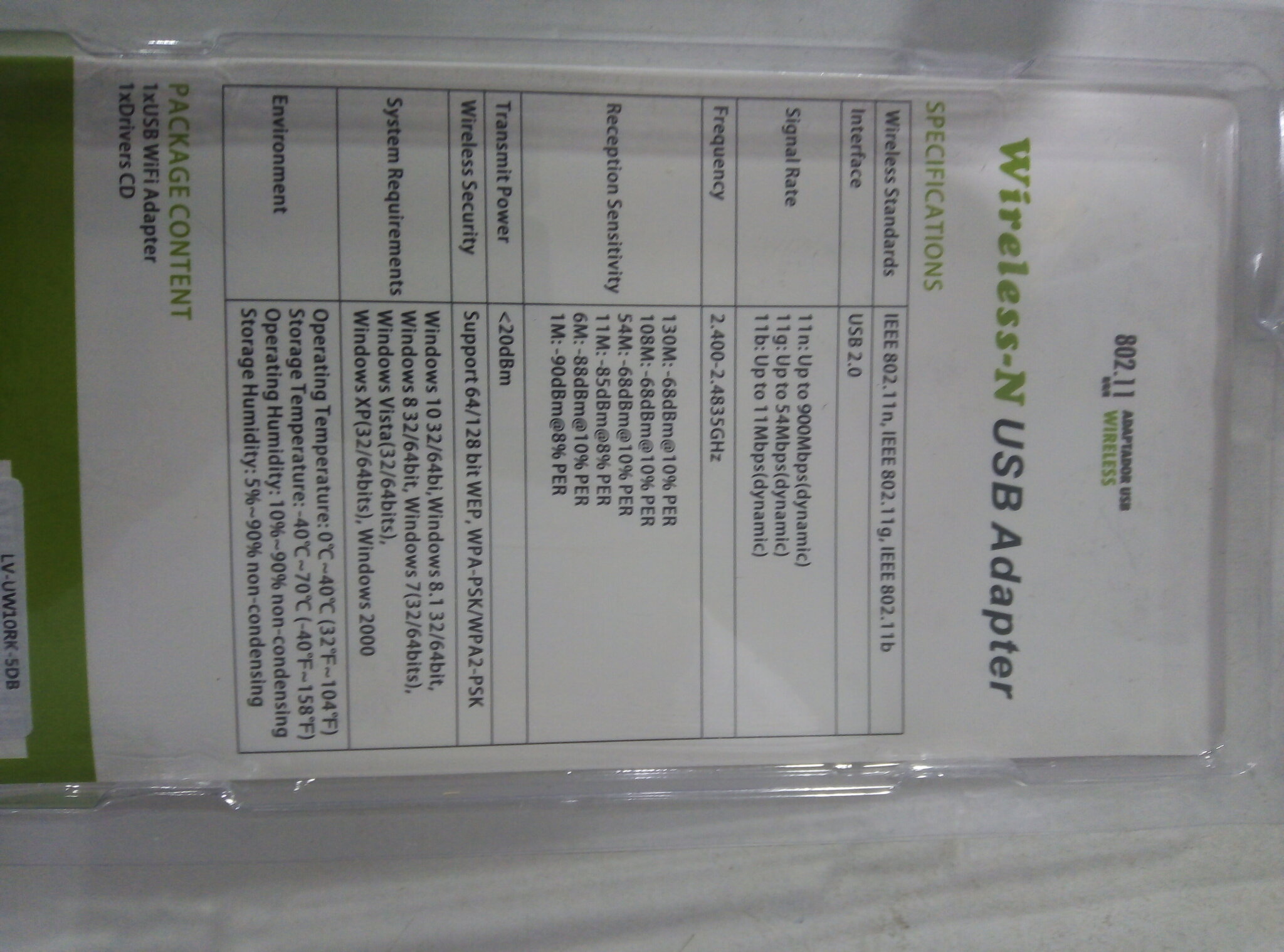 Wi-Fi адаптер , позволяет соединять устройства через Wi-Fi . Стандарт Wi-Fi 802.11. Макс. скорость беспроводного соединения 150 Мбит/с.